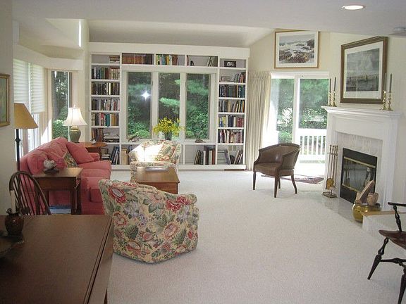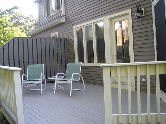Lovely end unit town home in Bay Farm. This unit is very sunny and sited quietly overlooking wooded grounds Cathedral ceiling living room with wall to ceiling built-in bookcases. Choose your master suite as there is one on each level. This home has been lovingly maintained and ready for immediate occupancy. Central air conditioning, 2 car attached garage , entertainment size deck. Easy to show...........