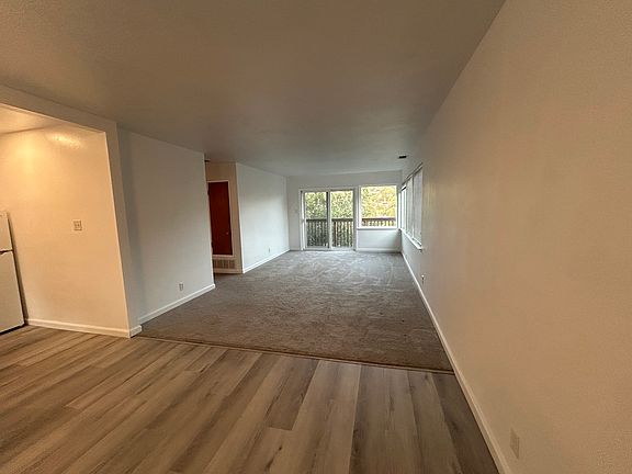 Upper unit in a duplex in West End San Rafael. The apartment is approximately 800 ft. with two bedrooms, one bath. View of Sun Valley and downtown San Rafael from the back deck. Quiet, out of the way street that is only a 10 minute walk from downtown shops and restaurants. New paint, fridge and flooring. Laundry room near storage area is used by both units in the duplex. Covered carport parking spot. Small storeroom under driveway is included, about 80 sq ft. . Kitchen pics soon. No smoking. Pets are subject to approval.