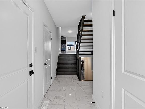 Executively built luxury townhome in the heart of Hamilton, fully upgraded from top to bottom with nearly $70,000 in builder upgrades. This stunning home features premium vinyl flooring, an elegant standing glass shower, an electric fireplace in the main living room, an upgraded kitchen with extended cabinets, an open hood range, and Level 3 quartz countertops complemented by a modern open-riser staircase. The main floor includes a tv mount with HD tv, Google Nest thermostat, Nest cameras, and existing window coverings for added convenience and comfort. The walkout basement offers excellent future rental potential, providing flexibility for additional income or extended living space. Outside, enjoy a beautifully finished backyard complete with a cozy fire pit, perfect for relaxing or entertaining. Situated in an astonishing neighborhood with an excellent walk score, this home is just minutes from major highways, McMaster University, shopping malls, parks, banks, and restaurants, and is surrounded by top-rated schools, making it the perfect place for any family to come home to.