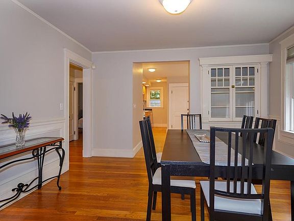 Light and bright two-bedroom, first floor condominium that offers an open floor plan, period details and shining hardwood floors throughout. Large entry hall leads to the living room with a French door to the office, gorgeous natural woodwork, and craftsman style half wall with fluted columns. Dining room features raised panel wainscoting and a built-in china hutch, and the updated, eat-in kitchen has maple cabinetry and recessed lighting. Additional features include lower level storage (currently used as a family room and not counted in square footage) and laundry, a back porch that was rebuilt in 2013, and garage plus driveway parking. Terrific commuter location near Cambridge, just two blocks from shops, great food, and public transportation. Get those wonderful Belmont Schools and easy access to Cambridge. 2013 LETTER OF FULL DELEADING COMPLIANCE.