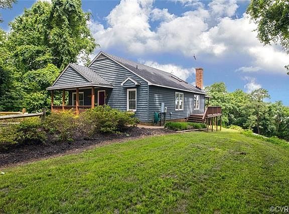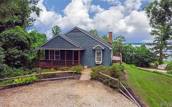 Situated on a bluff with amazing views of the James River, this wonderful waterfront community is one you surely dont want to miss out on. This home is just under 1400 sqft, featuring 3BR, 2 Full Baths, oversized 32x24 detached garage, perfect wrap around rear/side deck w/st stunning views & covered roofing, beautifully landscaped lot, front country porch, whole house generator, detached shed w/ golf cart storage,freshly painted exterior & all of this is just the beginning. Updated eat in kitchen boasting granite tops, vaulted ceilings, 2 skylights, hardwoods, backsplash, pantry, & ceiling fan. Open flow to family room w/hardwoods, vaulted ceilings, 2 skylights, floor to ceiling brick wood burning FP, built in bar w/ice maker, & vaulted ceilings. Master suite includes carpeting, fan, 2 closets, & private bath w/new flooring, dual sinks, linen closet, & tub/shower combo. 2 other bedrooms both w carpet, fans, & double door closets, & a hallway full bath rounds out this awesome 1 floor living home. Community boat ramp, beach access, pavilion, dock, & breathtaking views. Dont miss this wonderful opportunity to call this home at this amazing value too! This one wont last long!