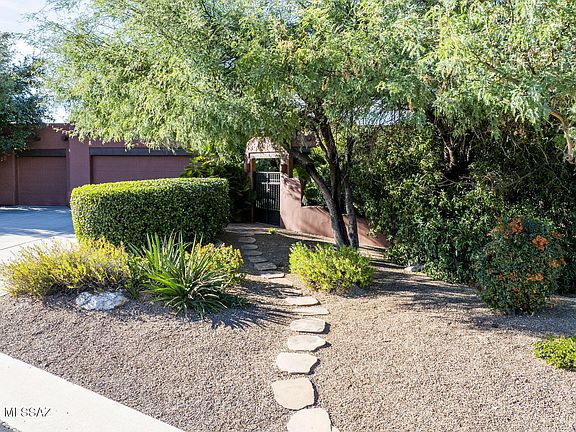 Featuring the inviting Durango floorplan and nestled in the desirable Santiago neighborhood, this stunning home offers a harmonious blend of indoor comfort and outdoor serenity. Find flexible living spaces ideal for everyday and entertaining plus 3 spacious bedrooms; versatile den offers direct access to the front yard. Step outside to enjoy walled courtyards and sheltered outdoor living areas thoughtfully designed for year-round enjoyment. Surrounded by mature vegetation, this lush, private environment brings nature's beauty right to your doorstep. Interior details include exposed beam ceiling, tile flooring; kitchen features custom cabinetry, granite countertops, stainless steel appliances. Functional layout with an emphasis on seamless indoor-outdoor flow makes this an ideal retreat.