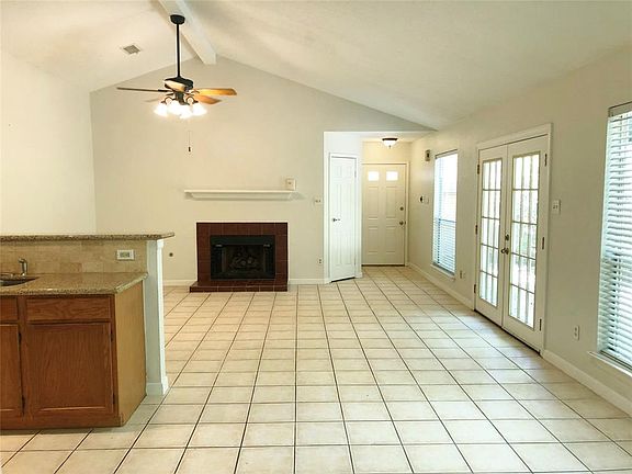 Well kept & updated patio home at end of C-D-S backing to greenspace. High ceiling in living area, fireplace, kitchen-breakfast bar, black appliances. GRANITE-kitchen & baths. Open floorplan, lots of natural lighting. Split bdrm floorplan. Master up front, 2nd bdrm at back. Large bathrooms-2 sinks in each. Walk-in closets. Study with closet & built-in bookshelves c/b used as a 3rd bedroom. Deck and natural wooded, private backyard. 2 car det garage. Great location with easy access to I-45, Hardy or 99. 2017-Fresh paint, new carpet. No pets.