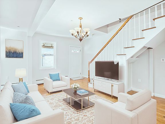 Exceptional Location Just Steps Away from Top Amenities & Convenient Access to Major Highways & Public Transportation. This Gorgeous South-Facing Bi-Level Condo is Bright, Sunny, and Bathed in Natural Light. Recently painted in soothing natural tones, it features stunning hardwood floors throughout and recessed lighting. The gourmet kitchen boasts solid maple cabinetry, stainless steel appliances, a beautiful backsplash, and custom inlaid tile floors. The spacious primary bedroom on the third floor includes a designer en-suite bathroom. The sizable second bathroom is equipped with a tub and shower surround, a large custom vanity, and elegant imported tile. The unit also includes a washer and dryer. Enjoy a charming front deck, perfect for a cozy bench table setting, along with one off-street parking space. This delightful condo is not just a place to live, but a lifestyle to embrace. The open-concept living and dining area offers a welcoming space for entertaining or relaxing, with ample room to personalize. Large windows invite an abundance of sunlight, enhancing the warm and inviting atmosphere. For those who work from home or require a dedicated study space, the condo includes a versatile bonus room that can easily be transformed into an office, library, or creative studio. Every detail has been thoughtfully considered to ensure comfort and convenience, from energy-efficient heating and cooling systems to ample storage solutions throughout. Step outside to explore a vibrant neighborhood filled with cafes, boutiques, parks, and cultural attractions. Whether you're commuting to work or enjoying a weekend outing, the excellent location provides seamless access to everything you need. This comfortable home is a rare find, offering the perfect blend of urban living with the tranquility of a private retreat. Welcome home to a space that truly reflects your style and personality. The tenants are responsible for their own utilities, gas electric and internet. the landlord pays for water and sewer