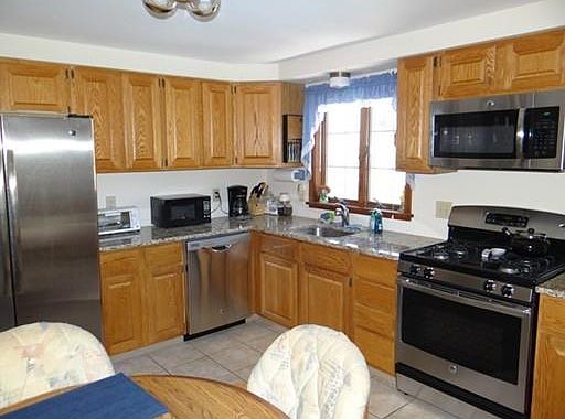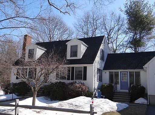 Custom built, 4 bedroom Cape Cod style home featuring stone fireplace living room with built-in shelves, formal dining room with pass through to eat-in kitchen with oak cabinets, ceramic tile flooring, granite counters and stainless steel appliances, heated sunroom, first floor bedroom or den, convenient 1st floor laundry, master suite w/ private bath, deck, central air and central vacuum, oversized 2 car garage w/ storage loft. Perfectly located on private lot at end of dead-end street. Property includes 30' x 36' horse barn with riding ring. Live and board your horse on one unique property! 8 miles from downtown Boston. Short walk to the lake at the bottom of the hill. On a clear day you can see the Prudential building in Boston.