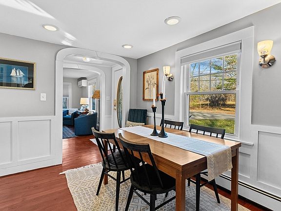 Remarkable Storybook expanded Cape, perfect location for easy beach & highway access, across from scenic Beckman Farm! Tasteful decor throughout, a must see! Warm light filled kitchen, dining & living areas. Kitchen featuring all the bells and whistles for the chef in fam. New Cafe series SS appliances, granite, tons of prep space, custom white Cabico wood cabinets, farmer's sink. Spacious living room with inviting gas fireplace, dining area perfect for entertaining, open concept. Mud room/den entry, garage access, slider to private rear yard. Entry Hall offering custom built-in storage bench & side closets, pantry closet, full bath w/shower & laundry area. Cozy Fam rm off kitchen w/ext access to new prof landscaped yard & cabana. 2nd level features 3 large bedrms each w/cedar closets, built ins, glass tiled tub/shower. 2 car garage circular drive, bonus extended area. Mitsubishi mini splits for A/C, young Buderus boiler, updated roof & windows. Gorgeous established flower gardens.