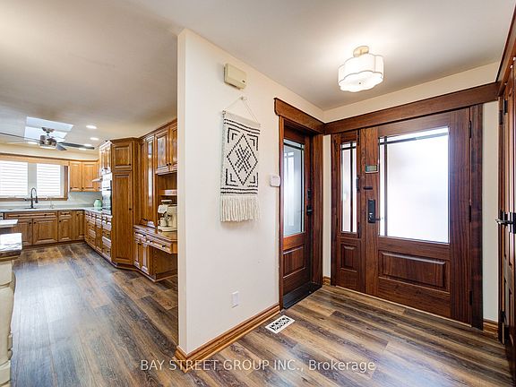 Rare bungalow on an extra-large 50 x 276 ft lot, offering over 2,500 sq. ft. of comfortable living. The main floor features 3 bedrooms and 2 full bathrooms. The entrance foyer boasts a skylight and flows seamlessly into the kitchen and breakfast area, which also has a skylight. The pantry area could function as a laundry, with plumbing and electrical hookups already in place. The large dining room with sliding doors opens to the backyard, while a bright and generous living room with new pot-lights fills the home with natural light. The master bedroom includes an ensuite, and the other two bedrooms share a full bathroom. The basement has been upgraded to 2 bedrooms and 1 bathroom, with the potential to create an in-law suite, along with a large family room featuring a gas fireplace. Enjoy the spacious deck for gatherings, while sheds provide excellent storage and space for plant nursing. The extra-deep backyard offers endless possibilities for gardening, entertaining, expansion, or future redevelopment. Additional upgrades include all appliances 2023, new washer & dryer 2025. Furnace 2023, new heat pump 2023, hot water heater 2023 and a new ventilation system 2023, water softener and water purifier 2023. Vinyl floor 2023. New fence on one side and back side 2025. Electrical panel upgraded to 200A with an electrical car charger 2024. making this home move-in ready and ideal for families, investors, or developers seeking space, comfort, and long-term value.