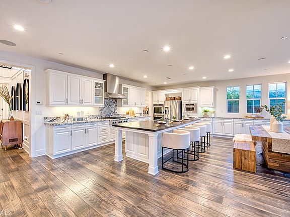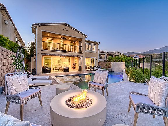 Perfectly positioned at the end of a quiet cul-de-sac, 47 Cielo Azul is a rare offering that seamlessly blends refined design with indoor-outdoor California living. From the moment you arrive, the home’s thoughtfully curated landscaping, long driveway and inviting front courtyard set the tone for what’s inside. The expansive backyard is a true oasis, anchored by a covered California room with a cozy fireplace and enhanced by two impressive multi-panel stacking doors—blurring the line between interior and exterior living. Step through the front door and you're immediately greeted by soaring cathedral ceilings, streaming natural light, rich wood floors, a designer feature wall, built-in speakers, and luxury finishes throughout. The heart of the home is a chef-inspired kitchen, fully appointed with quartz and granite countertops, premium stainless steel appliances, a 6-burner gas range with pot filler, dual ovens, custom panel dishwasher, a massive center island with bar seating, and a walk-in pantry. Downstairs, a flexible bedroom and full bath offer a smart solution for guests, a home office, or multigenerational living. Upstairs, discover a multi-use loft, an oversized laundry room, additional guest bedroom, and an extraordinary primary suite retreat that can be converted back to a 4th bedroom. Wake up to sweeping sunrise views and unwind at night on your private balcony with sunset vistas. Inside the primary suite, enjoy a dedicated wellness space and a spa-inspired bath complete with a soaking tub, oversized walk-in shower with dual heads, and generous his-and-hers walk-in closets with custom organizers. Step outside and be transported—your dream backyard awaits. Lush landscaping, stone hardscape, a resort-style pool and spa with tranquil water features, and unobstructed panoramic views combine to create a setting that’s both serene and unforgettable. This trophy residence stands out not only for its elevated setting and designer upgrades but for the lifestyle it offers. Come experience it in person—this is California living at its finest.