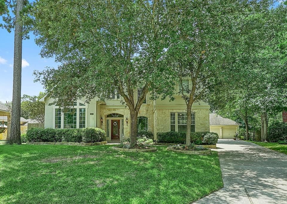 Gorgeous 2 story home nestled in a quiet cul-de-sac in the heart of Alden Bridge! Dramatic entrance met with high ceilings leading to an impressive open floor plan. Beautiful custom wood paneled library/study. Find the master bedroom with hardwood floors, along with one bedroom and bath downstairs. Large kitchen with NEW stainless steel double ovens, microwave and dishwasher. Oversized family room boasts of high ceilings, wired for surround sound and an amazing view of the manicured landscape in the backyard. Easy access to the backyard with 2 doors leading to the tiled patio, great for entertaining guests. Follow the spiral staircase upstairs to find 3 additional bedrooms and 2 1/2 baths. Upstairs gameroom allows for natural light to surround the area. Princess balcony connects the upstairs to an office nook with additional bedrooms. Backyard is large enough for a pool!! NEW roof added in August 2018.