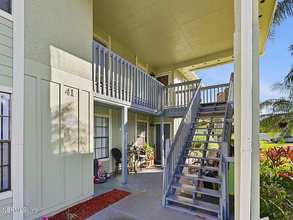 Updated Saint Augustine 2 bedroom/2 bath condo with a cute, coastal vibe is ready for a new owner for personal use or as a short-term rental! Or how about both? They don't make them like this anymore! The Seaside Villas condo complex is surrounded by plenty of green space with lush grass, tropical palm trees and parking for guests. The best part? It's a 5-minute walk to the St. Augustine Beach Pier and many favorite local restaurants. Slide on your flip flops and grab your fishing pole or volleyball! There are public courts by the pier and you can take in the weekly farmer's market or free music events there. The charming historic district, St. Augustine Amphitheater, Alligator Farm and Lighthouse are a very short drive too. The complex is well maintained, with a recently updated pool and new roof. Inside this second floor unit, you'll find vinyl-plank flooring, stylish furniture, decor, washer/dryer, linens and cleaning supplies. Everything stays and is ready for a new owner! This unit is set up for short-term rentals. Sellers will pass along all necessary information to make the transition easy. Water heater 2023. HVAC 2018/2019. This quaint condo complex is only two stories, with four units in each building, therefore there are no issues with elevator maintenance or Milestone inspections. Flood Zone X! Pets allowed.