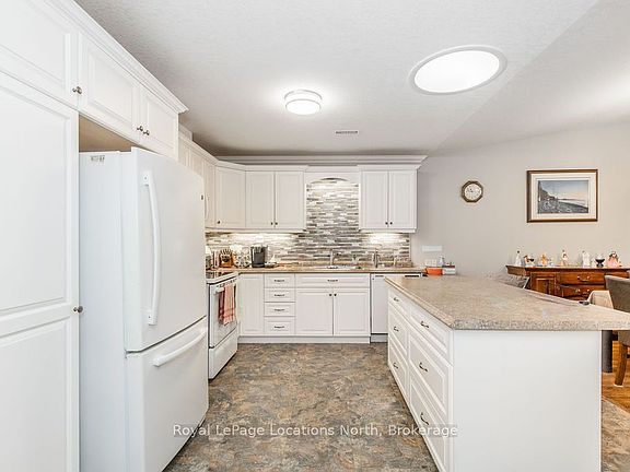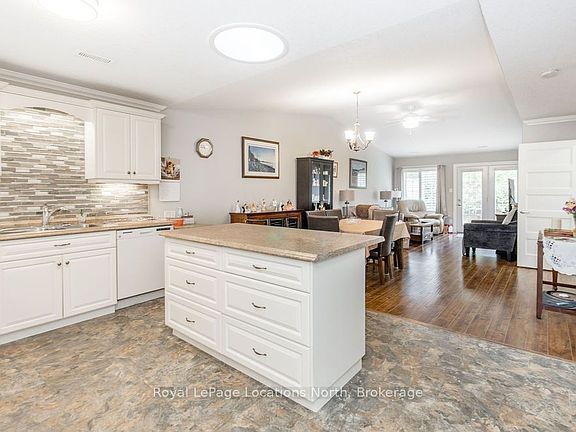 This true ranch-style bungalow is one of the very few single-level, fully wheelchair-accessible homes available in town, complete with a garage and inside entry, making it the ideal place to retire comfortably and never have to move again. Set in a prime central location, you're just moments from shopping, medical offices, restaurants, and the beach. Everything you need is close by, giving you the freedom and convenience you want in your next chapter. Inside, the home offers 1200+ square feet of well-designed space with vaulted ceilings that add openness and natural light. The large kitchen features a generous island with extra pot storage, perfect for cooking, entertaining, or gathering with family. You'll find 2 bedrooms, 2 bathrooms, and main-floor laundry, giving you just the right amount of space without any wasted areas. Upgraded flooring runs throughout with no carpet anywhere.The primary bedroom features a large wardrobe, a walk-in closet, and an additional storage closet. The private ensuite includes a walk-in shower with a built-in seat. Garden doors lead to a large concrete patio with a gas BBQ hook-up and a peaceful treed backdrop for privacy. Out front, the covered porch offers another spot to enjoy your morning coffee or relax outside through all four seasons.This 55+ community is known for its walking trails, pool, clubhouse, and a full calendar of social events - there is always something to do and friendly faces to enjoy it with. A rare, accessible one-level home in an unbeatable location. Perfect for low-maintenance living, downsizing with comfort, or settling into a relaxing and active lifestyle by the beach.