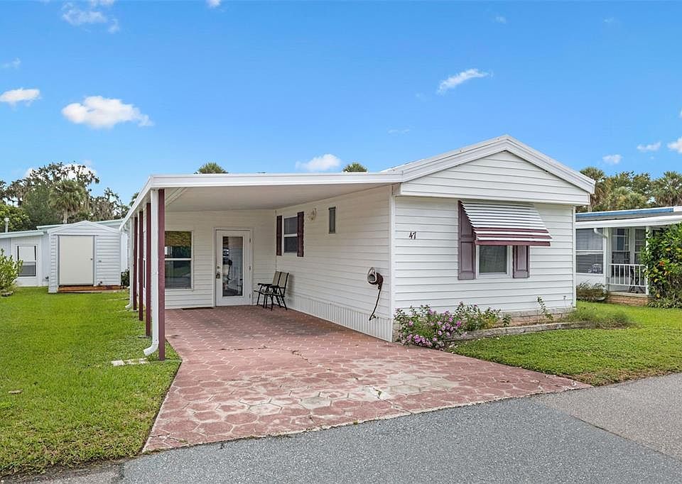 Completely Renovated 2-Bedroom in Country Club Manor – 55+ Resident-Owned Community. Welcome to Country Club Manor, a beautifully maintained, resident-owned 55+ co-op community on the shores of scenic Trout Lake. This fully renovated home combines the charm of Florida living with thoughtful upgrades and modern finishes. Step inside to a bright, open floor plan with a split-bedroom layout for added privacy. The kitchen is designed to impress with white cabinetry, stone countertops, and stainless-steel appliances. Both bathrooms have been updated with new vanities, fixtures, and finishes. The home’s upgrades make it feel like a traditional residence: New Insulation and Drywall throughout (no paneling), Widened hallways for an open feel, Wood beadboard ceilings with recessed lighting, Reinforced subfloors with new bamboo flooring in living areas, New HVAC System and Water Heater. A spacious Florida Room offers natural light and extra living space. Just beyond, a mudroom leads to an indoor utility room with washer, gas dryer, and mop sink. Outside, you’ll find a large storage shed perfect for yard tools, bicycles, or a golf cart. This home is truly turnkey and move-in ready—all furnishings convey, including two large smart TVs. The golf cart-friendly community offers wonderful amenities: Heated pool & shuffleboard, Clubhouse with social activities, Private boat ramp & fishing dock, Water, sewer, and trash included in the monthly fee. Ideally located just north of downtown Eustis, you’re minutes from grocery stores, pharmacies, restaurants, and everyday conveniences. Don’t miss the chance to enjoy a maintenance-free, active lifestyle in a friendly lakeside community. Schedule your private showing today!