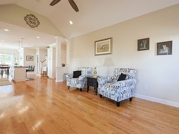 What an opportunity! As you enter the living room, kitchen and dining room all flow seamlessly with gorgeous hardwood floors and lots of natural light throughout. Kitchen has stainless steel appliances, huge island with room for seating and a pantry. Laundry conveniently located off the kitchen. Main bedroom with double door closet space has a full bath with a beautiful walk-in tile shower. Sliders open to your cozy deck. All on the first floor! Walk upstairs to a loft area perfect for home office, two good size bedrooms and full bath. Unfinished basement gives you lots of storage or potential for additional living space. Efficient gas heat, one car garage, great highway access and 5 years young! Get ready to enjoy the comfort and ease of condo living!