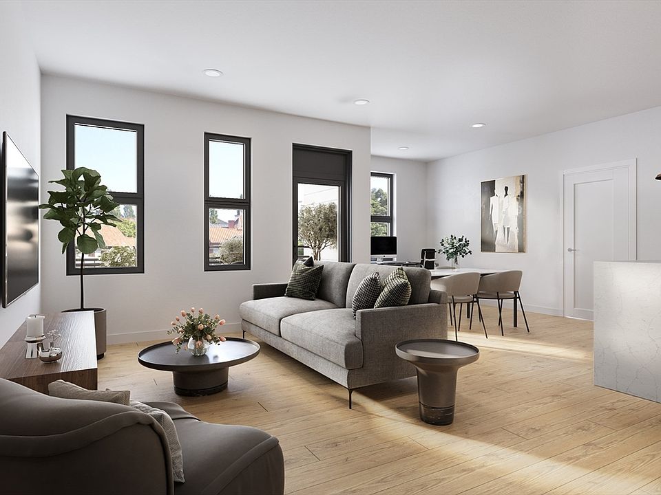 Ask about our exclusive financing options available through our preferred lender, putting your rate at 5.5%! Unit 203 delivers smart design and elevated finishes in a brand-new boutique building in East Boston’s Eagle Hill. This 2-bedroom home features a standout kitchen with a dedicated dining area, private rear deck, and a custom mudroom with in-unit laundry. The open layout is flooded with natural light, complemented by tall windows and white oak flooring throughout.The primary suite includes dual closets and a spa-like bath with designer tile and premium fixtures, while the second bedroom offers a flexible space ideal for guests or a home office. One covered garage parking space is included — making this home as practical as it is beautiful.