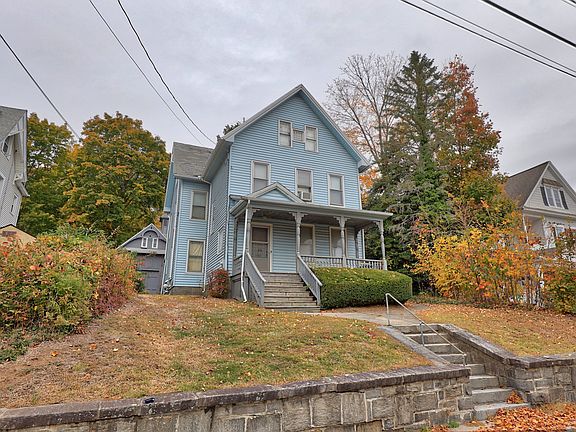 Expansive Victorian era home with a detached 2 car garage/barn with walk up loft. A handyman project ready for your restoration ideas. The bones are good here but house is in need of cleanout and complete renovation. Four second floor bedrooms, one without a closet. Plenty of room to use the current Dining Room as your fourth bedroom and utilize part of the oversized Living Room as a Dining Room. Charming front porch and rear enclosed porch with hatchway to full basement. You will not believe the size of the walk up attic! There is ample on street parking but access to the driveway and garage is from Mrytle Ave. Located near other large homes and the Ansonia library. Estate sale subject to probate approval( almost done) and sold "as is".