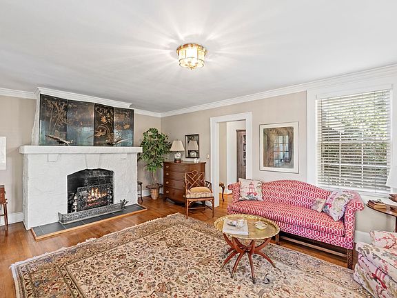 Timeless charm meets classic Greenville character at 47 Douglas Drive. This stately stone home sits gracefully among mature trees and lush landscaping, offering privacy and tranquility just moments from Greenville Country Club and Augusta Road. The granite façade and classic architectural details showcase craftsmanship rarely found today. A welcoming front porch with wrought-iron railings and a cozy awning creates the perfect spot to enjoy morning coffee or greet neighbors. Inside, you’ll find light-filled living spaces that blend warmth and elegance. The living room has a stone fireplace, hardwood floors, and crown molding, perfect for relaxing or hosting guests. A formal dining room with French doors opens to a cheerful sitting room, while the updated kitchen offers vintage charm and modern convenience with white cabinetry, solid-surface countertops, and abundant natural light. The main-level owner’s suite is a peaceful retreat with two walk-in closets and an updated bath featuring a double vanity, glass-enclosed shower, and soaking tub. Upstairs there are two additional bedrooms filled with character, plus a full bath with both tub and shower—perfect for family or guests. Outdoors, a private courtyard-style deck provides a serene space for entertaining or relaxing, surrounded by lush greenery and built-in bench seating. From its historic stonework to its ideal Augusta Road location, this home embodies the very best of Greenville’s timeless character and charm.