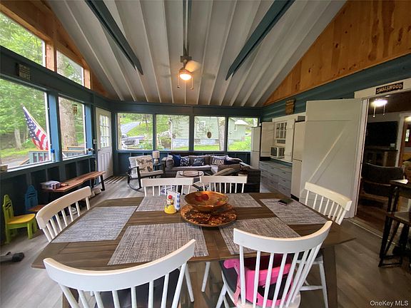 Move right into this turnkey seasonal home in sought after Smallwood. You will enjoy the morning sun on the back deck of this lovely home, which sits on a corner lot totaling approximately .23+/- acres. Some updates are the roof, washer/dryer, plumbing, water heater, exterior paint and gutters. The kitchen was tastefully upgraded with stainless steel appliances, wood cabinets with soft close doors, farm sink and quartz countertops. The beautiful stone fireplace has a new cap. Enjoy the bright, open and airy 442+/- sq ft screened in porch practically doubling the size of the home looking at trees or cozy up in the gazebo with an overhead fan. The expanded rock driveway also allows for plenty of parking. Smallwood offers the Forest Reserve featuring over 130 acres of trails, Minnie Falls, a dog park and outdoor gym equipment. Optional membership to the Smallwood Civic Association for nearby access to non-motor boat Mountain Lake for swimming, fishing, tennis courts, basketball courts, playground and lodge along with other activities. Sit by the fire pit, and get your BBQ grill ready to relax and make new memories. Near to waterfront dining, Bethelwoods Performing Arts Center, Resorts World Casino and Kartrite indoor water park. Don't miss the chance to embrace lake community living.... Your new adventure awaits!