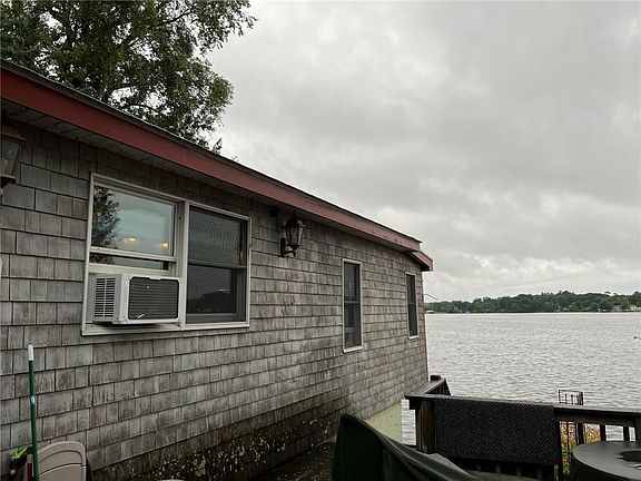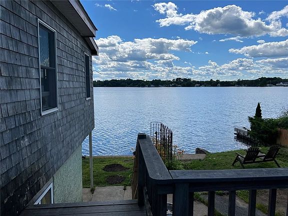 WATERFRONT at an affordable price! Awesome opportunity for a well-maintained home on a quiet street on Lake Tiogue! Unbelievable views & gorgeous sunsets from the stone patio or deck! Giant Trex deck to entertain, relax, or grill while you take in all the beauty. Home has been upgraded & remodeled by current owners. Main level features 2 bedrooms & 1 full remodeled bath w/ pretty apron sink vanity & heated towel rack, roomy open kitchen, large living rm & dining area w/ awesome vaulted/beamed ceilings, pellet stove & full wall of windows facing the water to take in all the views. Hardwoods throughout main floor. Walk-up stairs to giant attic storage! Lower level is a partially finished walk-out & w/ great potential for renovations. Has laundry rm, lg flex room w/ walk-in closet, storage area. Roof replaced in 2007 w/ 50-year Arch shingle roof. Heating system replaced 2007. Window AC units 5 years old. Easy hwy access & close to all shopping, restaurants, main part of town. This lot enjoys 58-feet of water frontage and is ready for a dock. Canoe, kayak, jet ski or sail away! Concrete steps go right into the water. Ice skate in the winter! Nice new storage shed, additional storage shed and storage box all stay. Great seasonal or year-round living and NO flood insurance needed. Property being sold as is and will not pass FHA due to working cesspool (Town sewers on the horizon). See attachment RI Housing for cesspool assistance. OFFERS DUE BY MONDAY 7/11 @ NOON.