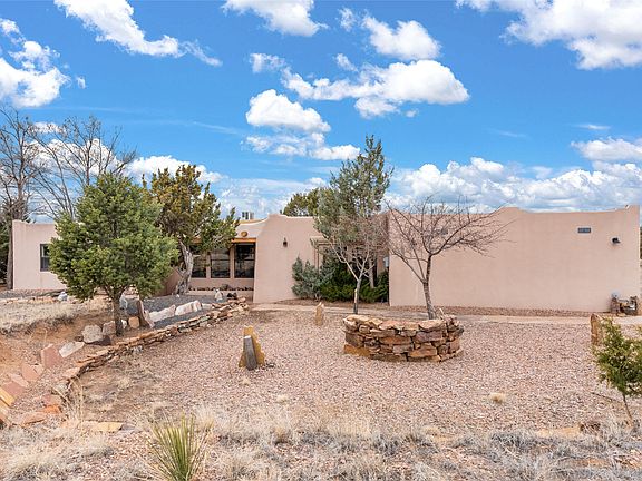 MOTIVATED SELLER!! Enjoy the peace and tranquility of this delightful home. Sited on a premium and generous 2.4-acre lot and bordered by a large greenbelt with direct access to hiking trails, this 3 bedroom, 3 bath, single level home, filled with natural light, features a wonderful open living and dining area and a separate eat-in kitchen. The kitchen is spacious with a lovely bay window to take advantage of the very private and open vistas. Enjoy the majestic mountain views and glorious sunsets from covered portals perfect for dining and entertaining or just relaxing. The primary bedroom offers a walk-in closet, en-suite bathroom and access to a private patio. A second bedroom provides flexibility as a home office or a guest room. The split bedroom floor plan provides privacy for an in-law suite with a bedroom, ½ bath and private entrance. There is a single car garage with direct access to the home. The home and surrounding grounds have been lovingly cared-for and well-maintained over the years. A peaceful sanctuary with all the conveniences Eldorado offers – endless walking and hiking trails, shopping and dining, a community center, pool, parks, tennis and pickleball courts – and just minutes to Santa Fe. Please view the video.