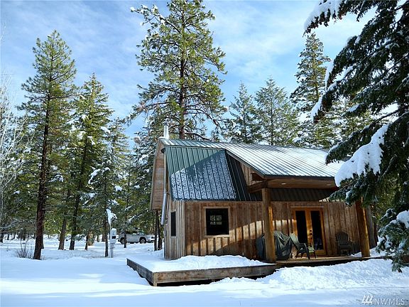 PRIMO MAZAMA LOCATION This mini cabin affords its dwellers all of the conveniences of modern design while celebrating simplicity & efficiency. Zoned for tourist accommodations so nightly rental is an option.Ski, run or bicycle out door to Mazama trails, Mazama Store & Methow River. Enjoy the peace & quiet on 4+ level acres w scattered pines.Desirable year round sunshine on Goat Creek Road, the sunny side of Mazama! Hardworking floor plan w sleeping loft. Storage shed ideal for outdoor equipment.