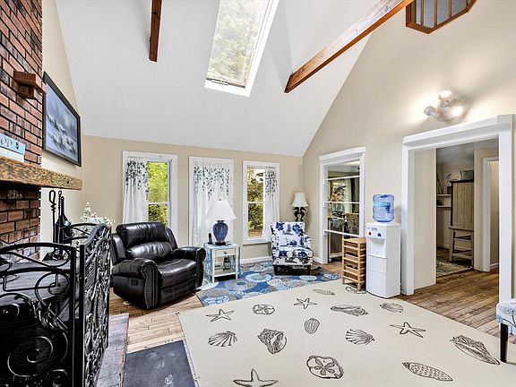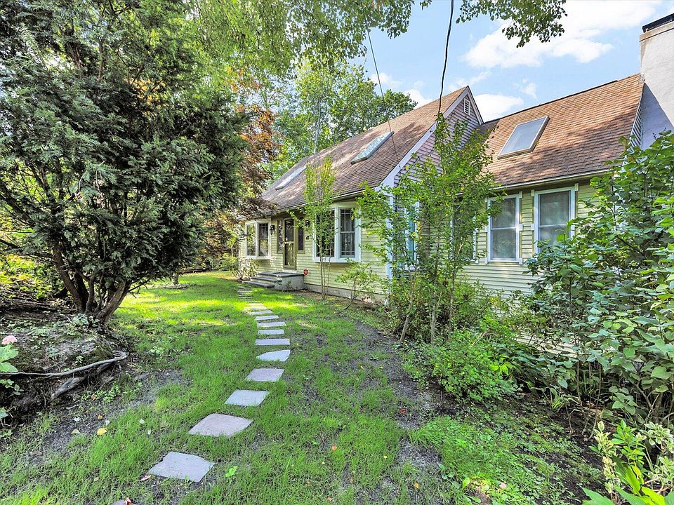 Discover a gardener's paradise in this beautiful Cape-style home, nestled on a private almost 1/2-acre lot in Falmouth's sought-after Hatchville neighborhood. The lush, landscaped grounds burst with mature flowering perennials, creating a serene retreat. Just a short stroll from Deep Pond, enjoy swimming, fishing, or relaxing on its sandy beach. This inviting property features a flexible floorplan with a first-floor primary bedroom and office, plus two spacious upstairs bedrooms bathed in natural light from skylights. The living room boasts soaring beamed ceilings and a Russo woodstove for cozy supplemental heat. Original oak floors flow through the living areas, complemented by recent updates including replacement windows and fresh paint. Newly updated exterior trim, siding, drains and a leaf gutter filter system add to the appeal. A partially finished walkout basement offers potential for expansion and easy access to the secluded backyard. Lovingly cared for by the same owners for 40 years, this solid home is a rare opportunity to own in a prime location with easy access to beaches, the bridge, and all the Cape has to offer.