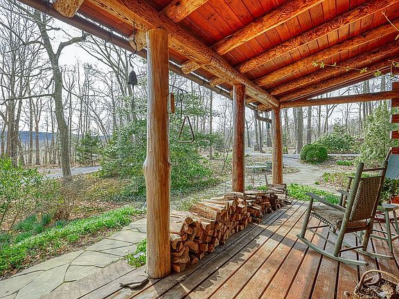 Ever dream of owning a beautiful home surrounded by 138 acres with walking trails, community gardens and more? Welcome to the intentional community of Greening Life which is gently nestled in mountains with picturesque views from every angle. This wonderfully maintained rustic log home offers a unique blend of privacy and community. The spacious front porch is the perfect place to sit and enjoy the natural beauty that surrounds you. Step into the oversized family room, complete with an abundance of windows, hardwood floors, rustic wood beams and a brick floor to ceiling wood-burning fireplace. Eat in kitchen offers the latest amenities including Corian countertops, stainless steel appliances. double bowl sink and stovetop range. Relax on the expansive, rear enclosed porch where you can enjoy your morning coffee overlooking the wooded homesite and everything that nature has to offer. Retire upstairs to the owner's suite with wide-plank wood floors, beamed ceiling, built-ins and a large closet. Two additional bedrooms separated by beautiful wood pocket doors allows for two separate rooms or one large space. Full unfinished basement provides an abundance of storage. Two car carport with loft area. Various mini splits throughout provide for energy efficient heating and cooling. Contact us today to experience the amazing lifestyle that Greening Life offers! With only 8 homes in the community, you have the opportunity to enjoy all of the benefits of this thriving intentional community in the heart of Shermansdale which include an in-ground pool, picnic area, barns, walking trails, community gardens and deep woods for hunting. This is not a drive-by, so call us today for more information!
