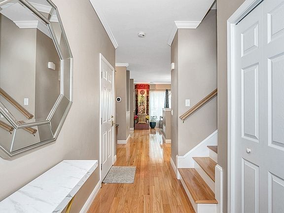 Beautiful 2-Bedroom Townhouse in Desirable Blanchard Pointe can be yours. Welcome to this meticulously maintained end-unit townhouse featuring aspacious 2-car garage and an inviting open floor plan. The main level boasts gleaming hardwood floors throughout, high ceilings, & an open layout that includes acomfortable family room, dining area, and a large kitchen with granite countertops. The living room opens to a lovely deck, perfect for relaxing or entertaining. Upstairs,you’ll find 2 bdrms & 2 full bathrooms. The primary suite features an updated bathroom, a walk-in closet, & a custom-built bureau. The laundry area with washer & dryer is conveniently located on the second floor. The finished basement provides additional living space ideal for a media room, home office, or gym, plus a large storage area. Additional features includes Granite countertops in kitchen & bathrooms, Recessed lighting, Finished garage with tiled flooring. This home combines comfort, style, & functionality.