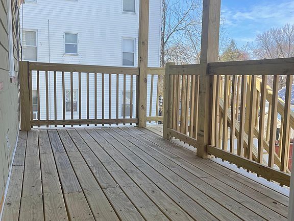 This renovated 2-bedroom apartment is located on the second floor. The apartment has replacement windows and the unit gets a lot of sunlight. The kitchen has modern white shaker cabinets with granite countertops and modern grey tile on the floor. There is great deck off the kitchen. The bathroom is also renovated with white tile and a spa-like blue paint. Both bedrooms are a good size with good closet space. There is parking in the driveway for one car.