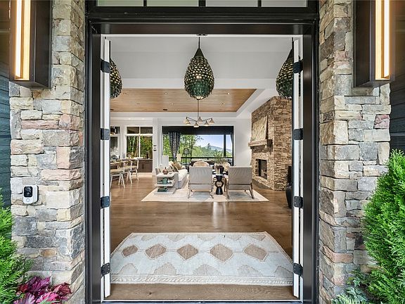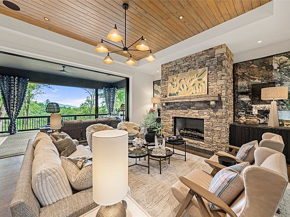 MOVE IN Ready! Welcome to your dream mountain retreat in the exclusive Saratay Falls subdivision of Cashiers, NC, home of the 2025 Cashiers Historical Society Designer Showhouse. This stunning modern rustic home, expertly crafted by the award-winning Loudermilk Custom Homes, offers an exquisite blend of natural stone, Hardi Board siding, and a standing seam metal roof. As you enter, you'll be captivated by views of the Fowler Creek Valley. The heart of the home is the spacious great room, featuring a cozy fireplace and an impressive 12-foot pocket sliding door that seamlessly opens to a covered porch. The chef's kitchen is a culinary delight, equipped with a 48" Wolf stove, Subzero refrigerator, and a large kitchen island for ample workspace. A convenient bar with a pass-through window to the covered porch ensures effortless access to the built-in grilling station, while the adjacent dining room boasts floor-to-ceiling windows that lead to a private patio. Retreat to the luxurious owner's suite, which is designed to maximize the stunning views with large windows, and a spa-inspired bath that includes a walk-in shower with multiple heads, a freestanding soaking tub, dual vanities, and a spacious walk-in closet. The upper level features three generous guest suites, each with private baths, plus a second living area, making this home perfect for family and friends. Located just minutes from downtown Cashiers, Saratay Falls is a gated community with scenic frontage along Fowler Creek, a magnificent 40-foot natural waterfall, and a private trail system for outdoor enthusiasts. Experience the best of mountain living in this exquisite home! Home is currently unfurnished, furnished pictures are from staging during Cashiers Designer Showcase Home.
