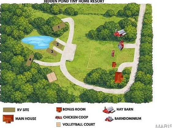 Discover this beautiful 3.2-acre Micro-Resort offering six separate income-producing assets plus future expansion potential. This turn-key development is sure to provide its owner with great cash flow and low-touch management. It features a beautiful main residence, a newly built 4-pad RV park on a private pond, a standalone barndominum (to be finished prior to closing), volleyball court, and several other outbuildings and bonus features! All of this just minutes from Lake of the Ozarks, Missouri.