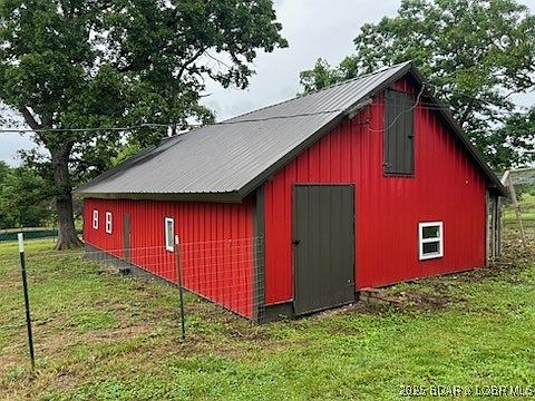 WOW!GREAT PRICE! Discover this beautifully remodeled farmhouse set on 3.2 mostly level acres with a private, stocked pond—perfectly located between Rocky Mount and Eldon. This charming 2-bedroom home offers the serenity of country living with modern updates throughout, including new mini splits, updated electrical, luxury vinyl plank flooring, a refreshed bathroom with a new vanity, and a new metal roof, soffit, fascia, vinyl siding, windows, and fresh interior paint. The property features four outbuildings, all with new roofs—three with new metal siding for added durability. One standout is the 12' x 18' building finished with electric, insulation, drywall, and LVP flooring—ideal as a studio, office, or bunkhouse. Additional structures include a 20' x 40' workshop/chicken coop with electric and concrete floor, a 32' x 46' three-sided shed, and a 15' x 30' garage with electric, concrete floor, and a new sliding door. Enjoy the peace of rural life with a garden ready for planting, and easy access to nearby Coffman Beach boat ramp and Bagnell Dam. Whether you're seeking a hobby farm, weekend retreat, or full-time homestead, this property has it all—Schedule your showing today