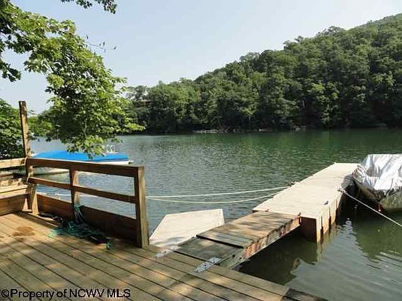 Privacy abounds on this .66 acre parcel that offers stunning views of Cheat Lake with private boat dock & access to Cheat Lake , yet is within minutes of downtown Morgantown and WVU & offers easy access to I-68. Main level boasts fireside living & dining spaces and a kitchen with granite counters & new applicances. Main Level Master Suite w/ 3rd fireplace & access to deck with view of Cheat Lake. Additional 2 bdrms and 2nd full bath on 1st floor. Upstairs is a study/loft area & 4th bedroom w/full bath.