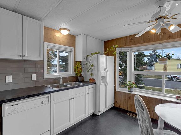 HOME SWEET HOME! Welcome to YOUR EXCITING, RARE AND AFFORDABLE OPPORTUNITY for first time home buyers and investors alike in Huntington Hills! The MOVE-in READY MOBILE HOME with a DOUBLE ATTACHED GARAGE is situated on a LARGE TITLED LOT so you OWN IT and don't have to pay a park lease fee! This charming home offers a ton of character with 3 bedrooms, 1.5 bathrooms and over 963 SQFT of heated open concept living space PLUS 515 SQFT of unheated storage space. Heading inside you will find linoleum and vinyl plank flooring throughout. The modern layout includes a formal dining area, modern kitchen with a peninsula island (with an eating bar, lots of cabinet space and full appliances), bright living room, 2 piece vanity jack and jill bathroom, and a laundry room. Completing the home are 3 bedrooms including a large primary bedroom and a wonderful 4 piece ensuite bathroom. Outside, you will find the convenient double attached garage which is connected to the house with a closed-in walkway (515sqft) leading from the front to back yard. There is additional driveway parking for 3 more cars. The large backyard is fenced and landscaped making it perfect for gardening or outdoor family activities. Amazing location close to several parks including NOSE HILL PARK, a public outdoor skating rink, tot lot playground, reputable schools, shopping, restaurants, public transportation and major roadways. Don't miss out on this opportunity, book your private viewing today!