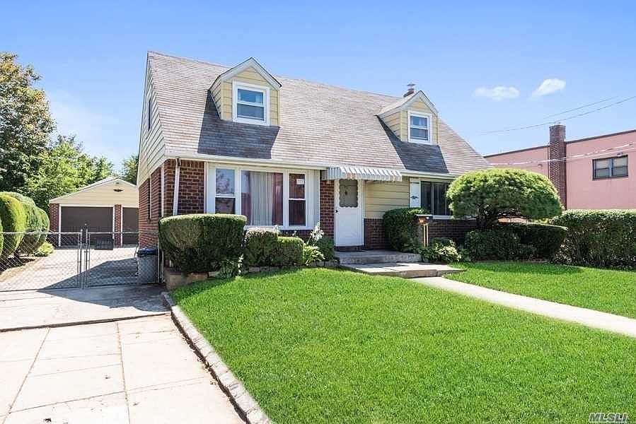 Large expanded cape with large basement with lots of storage and a water purifying system, Most replaced windows, Hardwood Floors, Den or family room with entrance to the yard, appliances are "as-is", new garage door on the oversized 2 car garage, 2 full baths, gas heat and cooking, Mother Daughter potential. Needs TLC. Taxes do not include the STAR. Conveniently located near shopping, transportation and houses of worship.