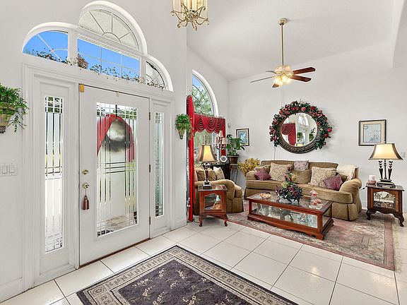 Welcome to this beautifully upgraded custom Fred Beck home featuring 4 spacious bedrooms, 4 full bathrooms, and an inviting in-ground pool and spa with serene lakefront views. Enjoy the expansive layout with cathedral ceilings, elegant plant shelves, and an open, split-bedroom floor plan that’s both bright and functional. The formal living and dining rooms are perfect for entertaining, while the large upstairs bonus room with a full bath offers endless possibilities—ideal for a media room, guest suite, or home office. The primary suite is a true retreat with a 9x9 sitting area—perfect for a home office or reading nook. The en-suite bath boasts double vanities, a jetted garden tub, walk-in shower, and a private toilet room. Step outside to your personal paradise! The covered lanai includes a summer kitchen area, ideal for year-round entertaining. Surrounded by lush landscaping, the home offers exceptional curb appeal with a circle driveway providing ample parking. Don’t miss this opportunity to own a lakefront pool home filled with custom upgrades and timeless charm. Call today to schedule your private showing!