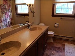 Super clean and beautiful tri level home in desirable Goffstown neighborhood! granite counters, double corian vanities, 1st flr laundry, half bath and office, framed lower level for more living space if needed. The walk out basement overlooks a wonderful yard with stone walls. fabulous trex deck, garage, fireplace.