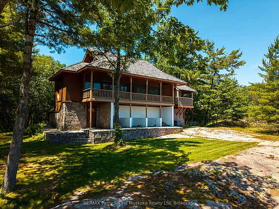 This is a one-of-a-kind Georgian Bay retreat with exceptional privacy, sitting on over 2 acres of wooded property right next to the pristine woodlands of Killbear Provincial Park. The lot features 196 feet of south-facing waterfront with a natural sand beach and a gently sloping, accessible shoreline. The fully winterized cottage has been recently modernized with updated bathrooms and a kitchen featuring vaulted ceilings, hardwood floors, and a new kitchen, as well as a screened-in porch. Closer to the water are two separate waterside cabins, each measuring just under 600 square feet. One of the cabins has been recently updated with a gorgeous cottage finish, a wood-burning fireplace, a new bathroom, and soaring vaulted ceilings that offer incredible water views. The other building is ready for your finishing touches and features a cedar-lined sauna, bathroom, and ample storage space. It is a true family compound and a classic Georgian Bay setting.