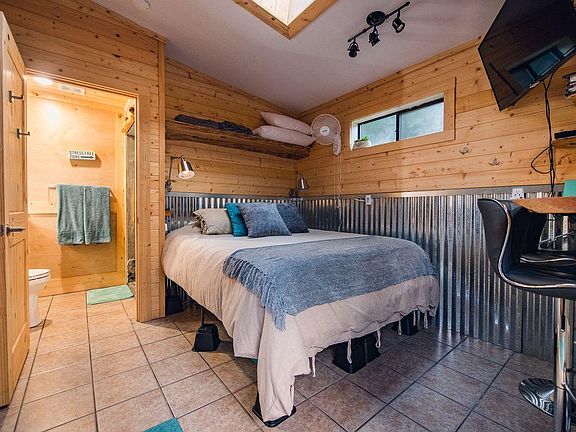Small living made large! Furnished handcrafted wood and custom designed space for perfect roomy feel. Great relaxing or working space with appropriate amenities. Wooded near Olympic National Park and Ocean Straits, Forest trails across the way, and only 10 minutes to Port Angeles and Victoria Ferry. Enjoy indoor fireplace, BBQ on the outside deck, or take a walk on a nearby trail in the Olympic Forest. This is 1 bedroom Queen bed studio with kitchen, bathroom, and large patio with heated outdoor lamps and propane fire. The studio is owned by our Elwha campground. Because you are our Elwha guest, you also will have access to all our amenities. We have a complimentary garden, DVDs, laundry room, pet sitting (by donation), cabana, outdoor games including a small basketball court, and a small gift store for last minute needs or souvenirs. We have a lease that can start anytime from now staying month to month or longer up to the months of April/May. Owner will pay for water, garbage, wifi and half electric. This is available on a monthly basic up to 6 months. No smoking. Parking available in front.