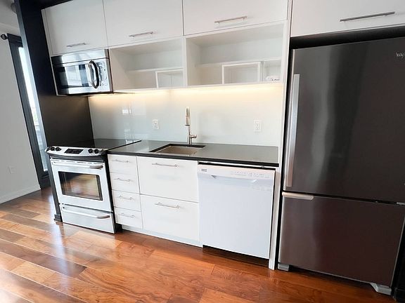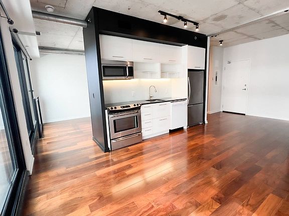 - Loft-style 9' ceilings with exposed concrete and ductwork