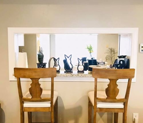 Private fenced backyardBright and open kitchenDining space