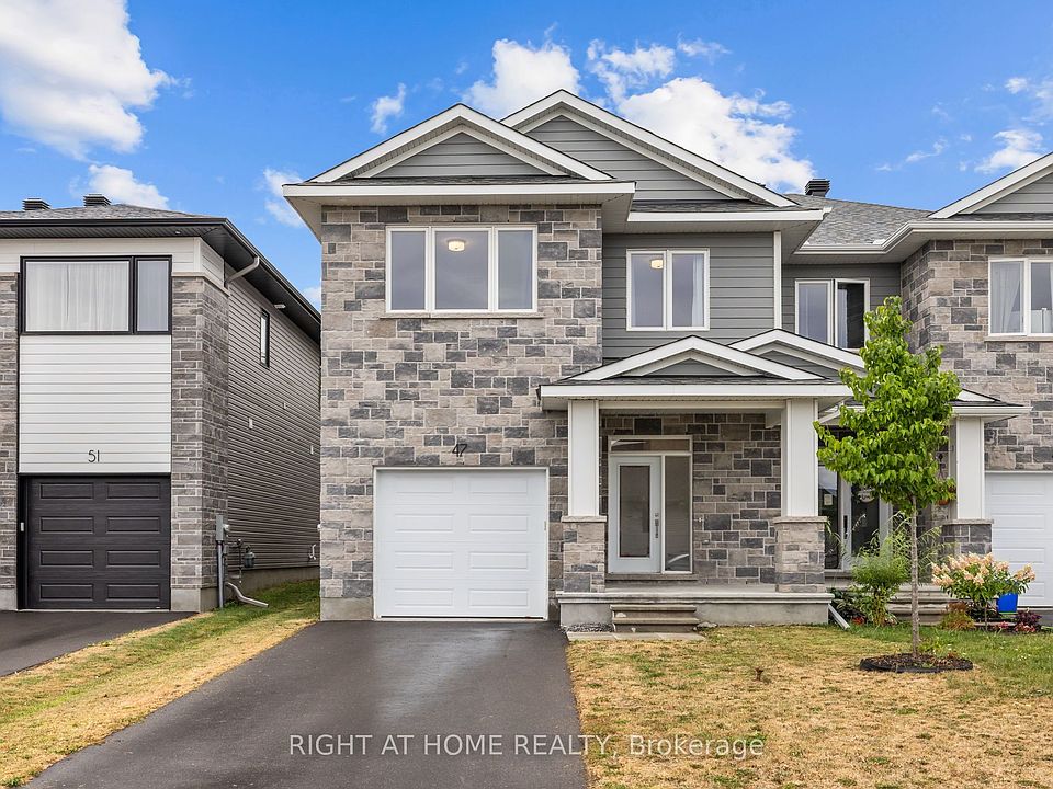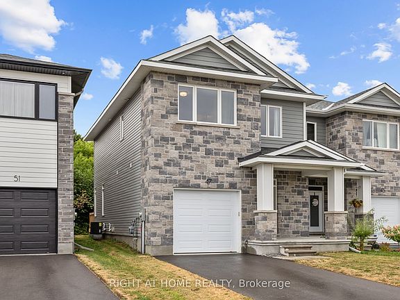 Welcome to 47 Mac Beattie Drive in the heart of Arnprior! This well-maintained 3-bedroom, 2.5-bathroom semi-detached home, built in 2022, offers the perfect blend of comfort and style. The open-concept living room flows seamlessly into a spacious kitchen featuring a walk-in pantry, quartz countertops, stainless steel appliances, and soft-close cabinets. Hardwood flooring on the main level and a wide staircase lead you to the second floor, where youll find a large primary bedroom with a walk-in closet and a spa-like 5-piece ensuite, along with two generously sized bedrooms, a 3-piece bathroom, and a convenient laundry room. The backyard is complete with a deck, perfect for summer BBQs, while the front offers 2-car driveway parking and an attached garage with an automatic door opener. Additional highlights include pot lights in the kitchen and living room, plus eavestroughs installed in 2022 for efficient rainwater drainage, and a 3-piece washroom rough-in in basement. Some areas have been virtually staged. All measurements are taken from the builder's floor plan. Contact me today to book your private viewing!