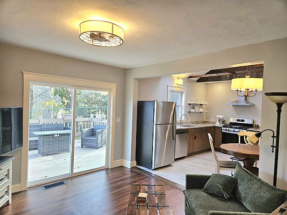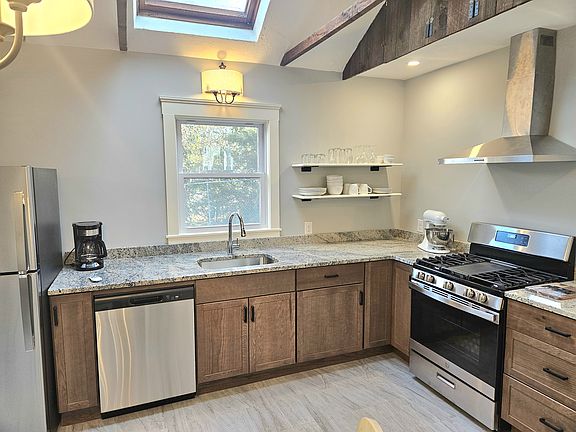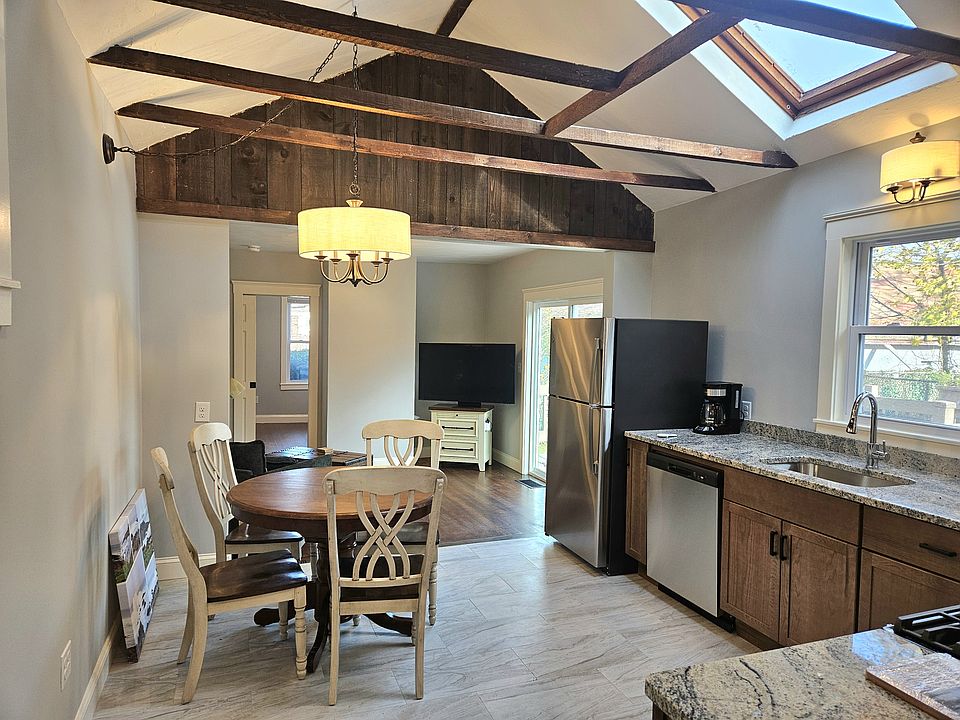 Be the first to live in this fully renovated and fully furnished one-bedroom, one-bath apartment in Hull's historic Village. The home features a brand-new kitchen with a stainless steel gas stove, vent hood, refrigerator, dishwasher, granite countertops, and skylight. The spacious bath includes an in-unit washer/dryer, tankless hot water heater, and linen shelving. Original wood floors were refinished, with new tile in the kitchen and bath. Updated lighting includes coordinated fixtures and pendant lights in the bedroom and living room. Set back from the road, this three-family home offers privacy with a deck, patio, off-street parking, and professionally maintained lawn. The Village playground is across the street, and the MBTA ferry, Jo's Nautical, and Shipwrecked are just blocks away. Trash, recycling, water, sewer, and lawn care included. No pets, smoking, or vaping. First, last, security, credit and background checks required.
