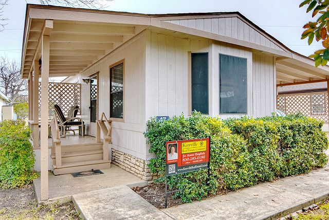 A Rare Home for Sale at this Price in this Market! Total Turn key Move In Ready! Extremely well maintained, updated, solid and super nice, inside and outside. This Fleetwood Manufactured Home located in a Community with approximate of 500 feet plus Guadalupe Riverfront and situated on a great lot on the perimeter of the park with views! This Nice Home features 1 Bedroom, 1 Bath, and has an open kitchen-living concept, available is a large wide covered carport with an approximate 10 x 10 workshop with covered entrance and electricity. Everything solid, clean and recent upgrades include a newer range-stove, a New A/C-Heat system installed in approximate late 2016, very fresh interior and exterior paint adding to the very nice curb appeal. At this price and in this growing buyer demand, this great valued Home is going to go quick!! Any Buyer that goes into contract by the end of April, will be provided by the seller a top tier Home Warranty for 1 year, to be paid for at a successful closing, and if there is a successful closing from that contract, seller will pay for the first month rent for the new Homeowner. The seller is a licensed Broker, MHDBRK00003570. A High numbers of views are happening!!! Call Soon!! Per a recent Professional Home Inspection, Seller has reduced sales price from $31,900 to $24,900 and is offering allowances to remedy item's listed on the report and is reducing sales price accordingly, please feel free to call and know of the improvements!