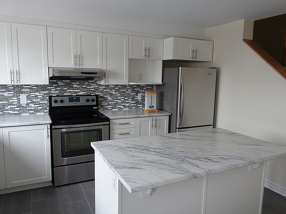 +Spacious Layout: Open-concept main floor with a sleek kitchen boasting marble-like countertops, island seating, stainless steel appliances (fridge, range, dishwasher), and mosaic backsplash. Flows into a bright living room and dining area for effortless living & entertaining.