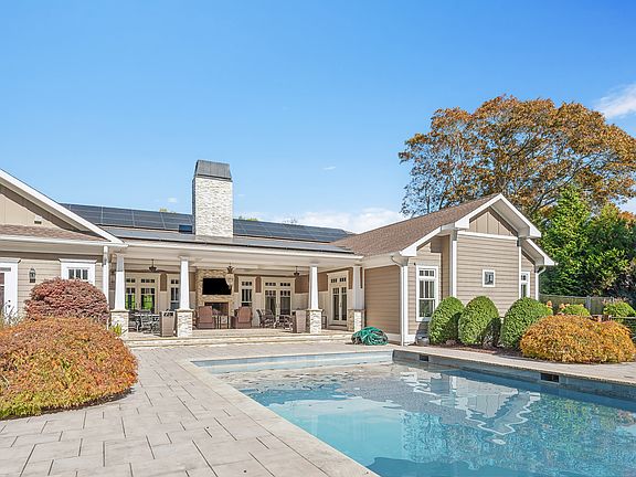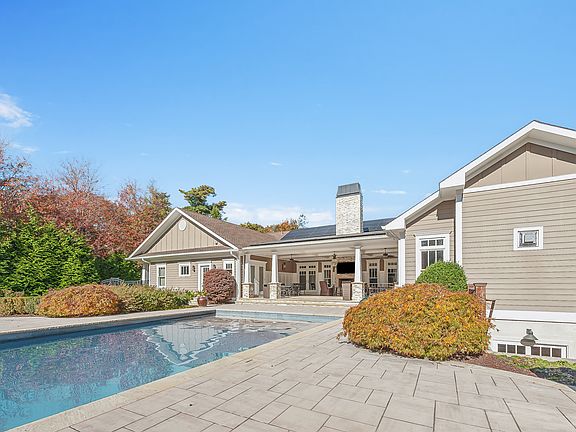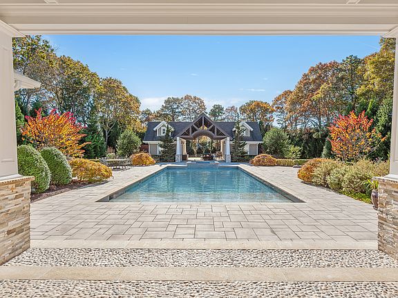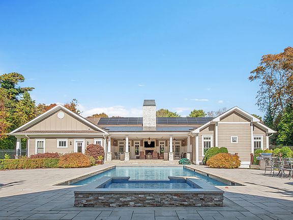 Imagine an enchanting summer vacation in the Hamptons at this exquisite Quogue retreat. This eco-friendly, single-level custom home boasts impressive architectural design with state-of-the-art lighting and sound systems. It features three en-suite bedrooms, a sunlit dining room, a gourmet kitchen open to a spacious living room, a butler's pantry, a home office, a luxurious laundry room, a gym, and an outdoor shower. The detached cabana includes a full bath. The expansive covered porch, with a fireplace and dining area, extends the home's interior. Beautiful gardens surround the heated saltwater pool and spa, offering a resort-style experience on this 1+ acre west-facing property. The three-car garage includes a charging station. Secure your summer getaway early, as this gem won't last long. Now available for June Rental or any two weeks in June for the US Open Golf Tournament.