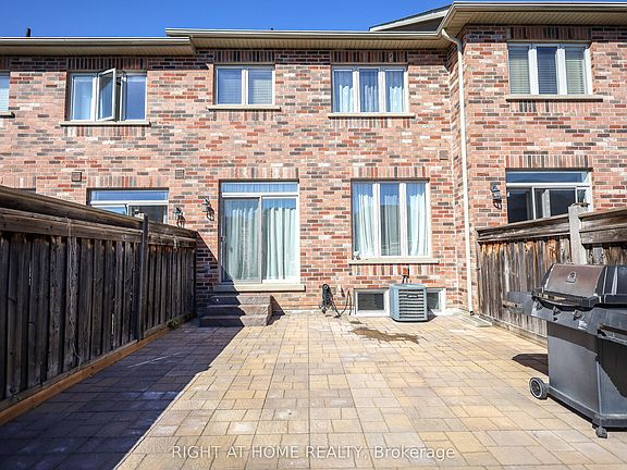 This well-maintained freehold townhome sits on a premium extra-deep lot with no sidewalk, allowing for additional parking and outdoor space. Ideally located on a quiet cul-de-sac, it's just steps from the Lebovic Campus and close to all essential amenities. The main floor features a welcoming foyer with mirrored closet, elegant French doors, and a spacious living and dining area with walk-out access to the backyard. The family-sized kitchen is thoughtfully upgraded with granite countertops, custom backsplash, upgraded cabinetry, a movable island, double sink, and stainless steel appliances. Smooth ceilings and a solid oak staircase add to the home's refined appeal. Upstairs, the generous primary bedroom offers a walk-in closet and a luxurious ensuite with double sinks, an oval soaker tub, and a large glass shower. Two additional bright bedrooms provide ample closet space and natural light. Located in one of the area's most desirable neighborhoods, this home combines comfort, style, and convenience in a peaceful residential setting.