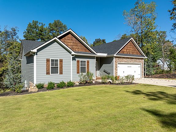 Stunning 3-bedroom, 2-bath home offering almost 1700 square feet of comfortable, one-level living. Situated on a spacious and level 0.75-acre lot, this property features a well-maintained exterior with Hardiboard, stone, and wood shingles, all surrounded by high-end landscaping. Located just minutes from town and shopping, this home offers both convenience and tranquility. Step inside to discover an open-concept layout that seamlessly connects the kitchen, living room, and sunroom, perfect for gatherings or cozy family evenings. The kitchen is equipped with high-end GE Profile appliances, offering a stylish and functional space for cooking and entertaining. The living spaces are bright and airy, and the sunroom invites you to relax and enjoy natural light throughout the day. The master suite includes a beautifully tiled shower and bath, providing a spa-like retreat. Two additional bedrooms offer ample space for family, guests, or a home office. The covered front and back porches extend the living area outdoors, providing the perfect spots to enjoy morning coffee or unwind in the evening. This home also features a 2-car garage and a walk-in crawl space, which presents an excellent opportunity for a future workshop or extra storage. The concrete driveway offers plenty of parking for you and your guests. The neighborhood is peaceful and walkable, ideal for those who enjoy spending time outdoors. With an annual HOA fee of just $300 and no short-term rentals allowed, this community offers a stable and serene environment. Don't miss the opportunity to make this beautiful home yours! Schedule your showing today and experience all this property has to offer! Furniture has been removed and are pictured for visual staging effects.