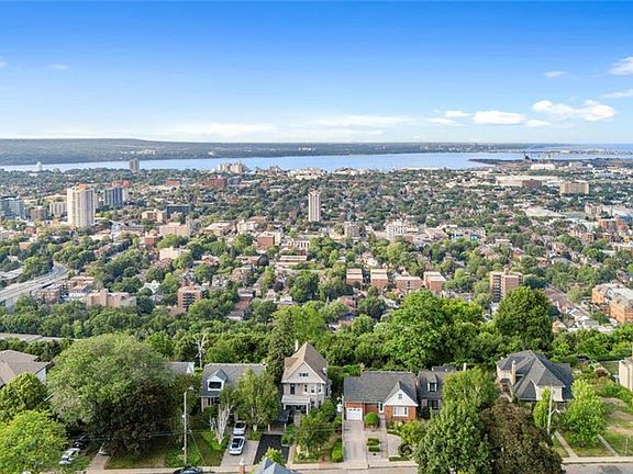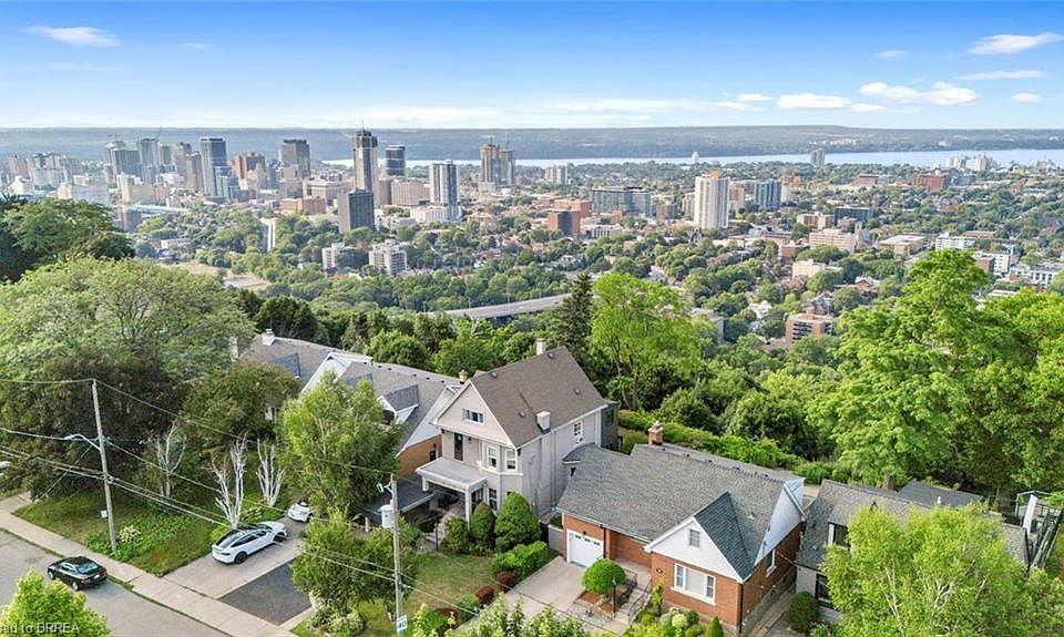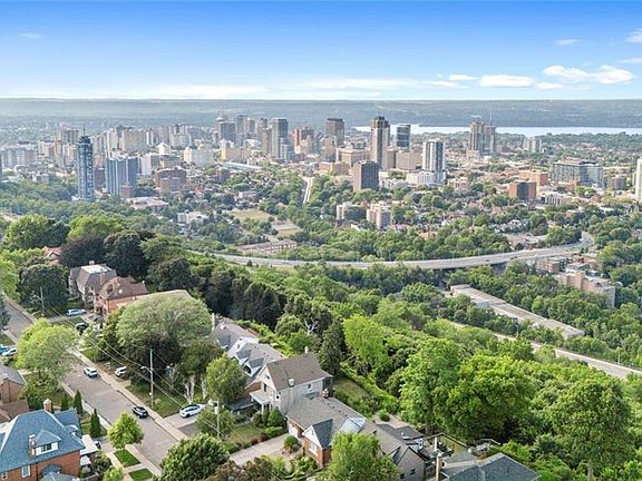 If these walls could talk, they’d have over 100 years of stories to tell. Perched on the edge of the Hamilton escarpment, this grand old soul has stood as a quiet witness to the unfolding of a city—watching the skyline stretch, the lights multiply, & Lake Ontario shimmer through every season. The views are nothing short of breathtaking, shifting in mood & colour with the time of day & weather—sunrises that set the city aglow, misty mornings cloaked in fog, & glittering nights under the stars. Step inside & the magic continues. Ontario black walnut flooring runs underfoot in many principal rooms, offering warmth & elegance in equal measure. The main floor is rich with charm & function: a formal living room off the entry, a grand dining room made for conversation, & a peaceful sitting room/four-season sunroom at the back where the world seems to fall away in favour of sky & cityscape. The kitchen is timeless with crisp white cabinetry, & a thoughtfully placed 3pc bathroom with walk-in tiled shower adds flexibility. Upstairs, the front bedroom is a sanctuary of light, with bay window framing the view & double closets. Two additional bedrooms serve as a home office & workout space, though the possibilities are endless. The upper-level bathroom is a statement—feminine, luxurious, with white chandeliers, soaker tub, & double vanity sinks that speak to slow mornings & self-care. Then there’s the third floor: a true bonus level filled with creativity & light. The rear room—with its commanding view—is now a music studio, but could be a Primary Retreat, teen hangout, or artist’s space. A full bath with tub/shower combo & a kitchenette complete this level, ideal for multi-generational living or long-term guests. Outside, the street is quiet & inviting, a blend of historic charm & tasteful new builds. But make no mistake—this home is unlike any other. It’s not just a place to live, it’s a place that has lived. And now, it’s ready for its next chapter. Will it be yours?