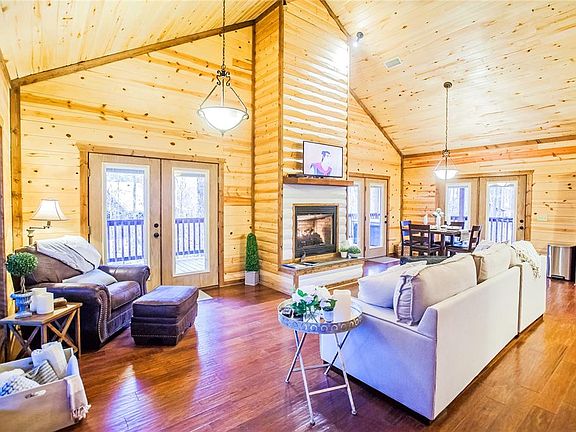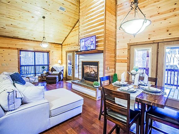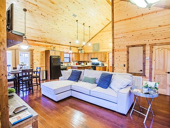 Welcome to "Backwoods" a perfect blend of rustic charm and luxury in this single story, one-bedroom cabin nestled in the highly sought-after Timber Creek South development. This spacious cabin comes fully furnished, turn key ready and income producing. Enjoy the bright decor that compliment the rich wood tones creating an inviting stay! Cozy up next to the gas fireplace in the living area with your favorite movie or book. Open concept kitchen to entertain while making your favorite meals - the ideal spot to relax after a day of exploring. Watch your favorite movie in the oversized king bedroom. The spa-inspired bathroom is a true retreat, featuring a soaking tub, double vanities, and an oversized walk-in shower—perfect for unwinding in total comfort. Outside, enjoy evenings by the gas fireplace with beautiful wooded views, grill your favorite foods, soak in the hot tub, or challenge friends to a game of corn hole while surrounded by nature’s beauty. Don't forget to roast s’mores over the fire pit gazing at the stars. Perfect for a romantic getaway or a small family vacation, making lasting memories! The seasonal creek adds a peaceful soundtrack, and the generous lot size offers ample space to add more amenities. Located within walking distance to a local winery, restaurants, Okie Girls Coffee and ice cream, this property combines serene privacy with the best of convenience. Backwoods delivers it all—style, comfort, prime location and a connection to nature. Minutes from Broken Bow Lake, Beavers Bend State Park, Choctaw Landing, hiking, and all Hochatown attractions!