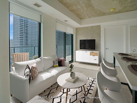 Step into urban luxury living in this stunning one-year-new corner unit nestled in the heart of downtown ** Priced to sell now! Offers anytime! ** Prime south-east exposure with unobstructed postcard views! A perfect layout, this 2-bedroom + 2 full bathroom haven is a sanctuary of modern elegance and convenience. Unbeatable price, approx 700 sqft interior + a huge 107 sqft balcony! Floor-to-ceiling windows flood every room with natural light. The open concept exudes freshness and sophistication at every turn. Immerse yourself in the vibrant cityscape, just steps to parks, great restos & iconic landmarks like St. Michael's Cathedral and the Eaton Centre. 24hr transit at your doorstep, the entire city is within effortless reach. Upgraded kitchen feat integrated appliances including flat, easy to clean, cooktop, perfect for culinary enthusiasts. Retreat to the expansive balcony offering breathtaking, unobstructed views of the skyline and lake Ontario. Floor-to-ceiling windows flood the interior in natural light, extending into both bedrooms for an airy, open ambiance. Revel in the privacy of a split floor plan, ideal for harmonious living. Custom white roller blinds already installed in every room! Welcome home.